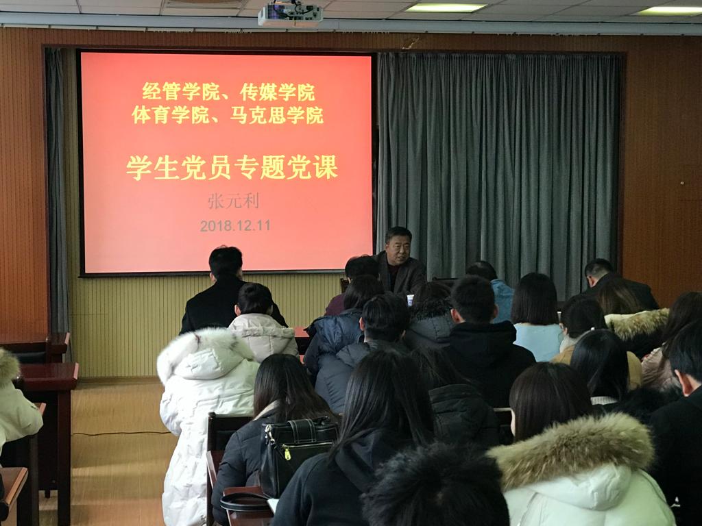 419会议室,学校党委副书记张元利以“改革开放四十年”为题讲授专题党课,经管无码欧美
