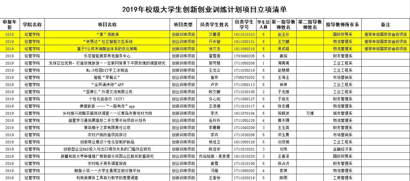 公布了2019年校级大学生创新创业训练计划项目立项名单,经管无码欧美