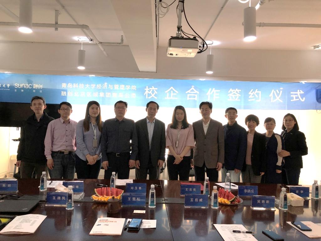 与融创中国北京区域集团青岛公司签订校企合作协议,并举行校外实习基地授牌仪式。融创中国北京区域集团人力总监王岳威,融创青岛公司东方影都项目总经理王雪松等出席仪式。