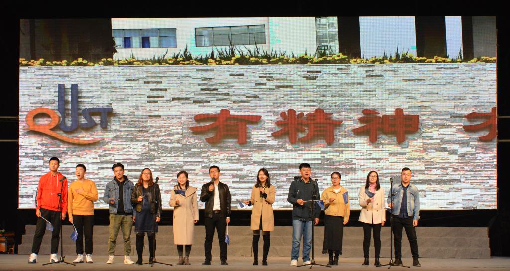 庆70华诞,谱科大新篇。在举国上下欢庆中华人民共和国成立70周年之际,为表示对2019级新同学的到来,学校“守70载初心 担科大人使命”——庆祝中华人民共和国成立70周年暨迎新生文艺晚会于2019年10月16日晚6时30分在崂山校区南苑运动场隆重举行。晚会分为“守初心庆华诞”、“担使命颂科大”两个篇章,我院师生代表参与的节目在晚会演出过程中大放异彩,倍受好评。