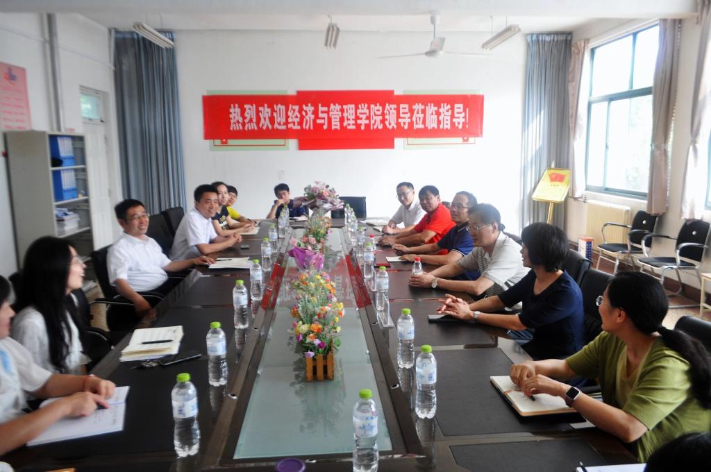 院长李勋来、党委书记李德成一行走访高密校区经管系,高密校区管委会常务副主任梁树清、高密校区党委书记王建民出席会议,经管系全体老师参加。