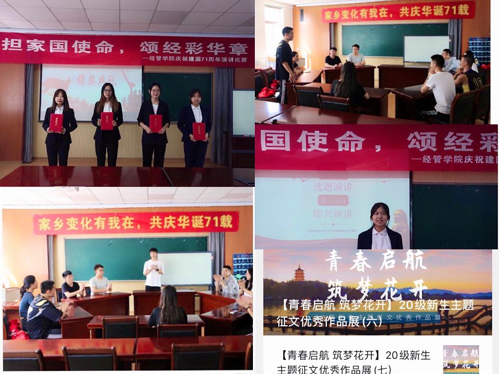 以学生为主体,在线上平台开展“四史学习”知识竞赛、线下开展“担家国使命、颂‘经’彩华章”演讲比赛,在实践中“固初心、悟原理、启智慧”,全面提升学生素养,形成热爱伟大祖国、礼赞美好时代的热烈氛围。