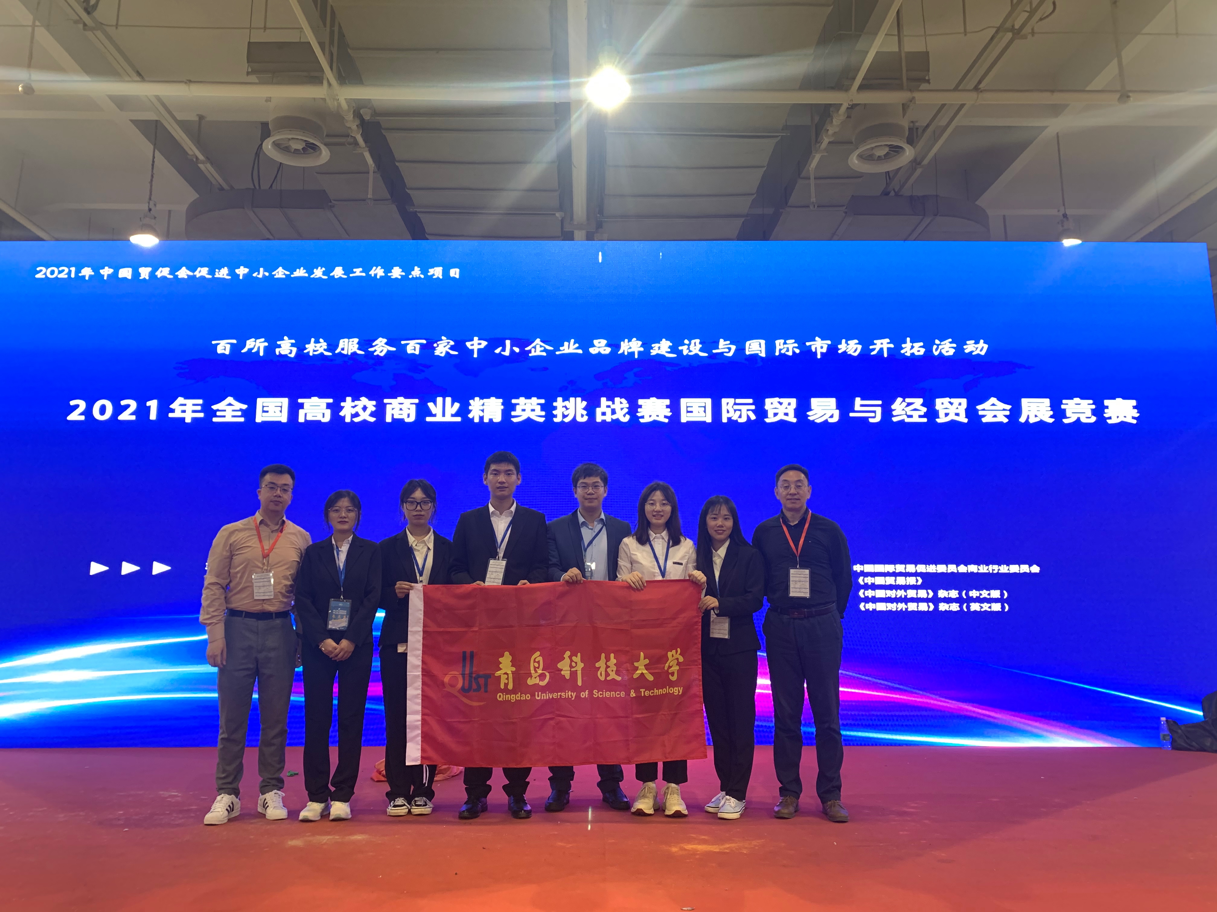 学生组成的团队经过参展计划书撰写、展位海报设计与商品陈列、新产品发布会、商贸配对贸易谈判等环节层层筛选,一路披荆斩棘,在参赛队伍中脱颖而出,向与会专家和其他高校参赛队伍展示了青科大学子严谨的学习态度和良好的精神面貌,获得一致好评。
