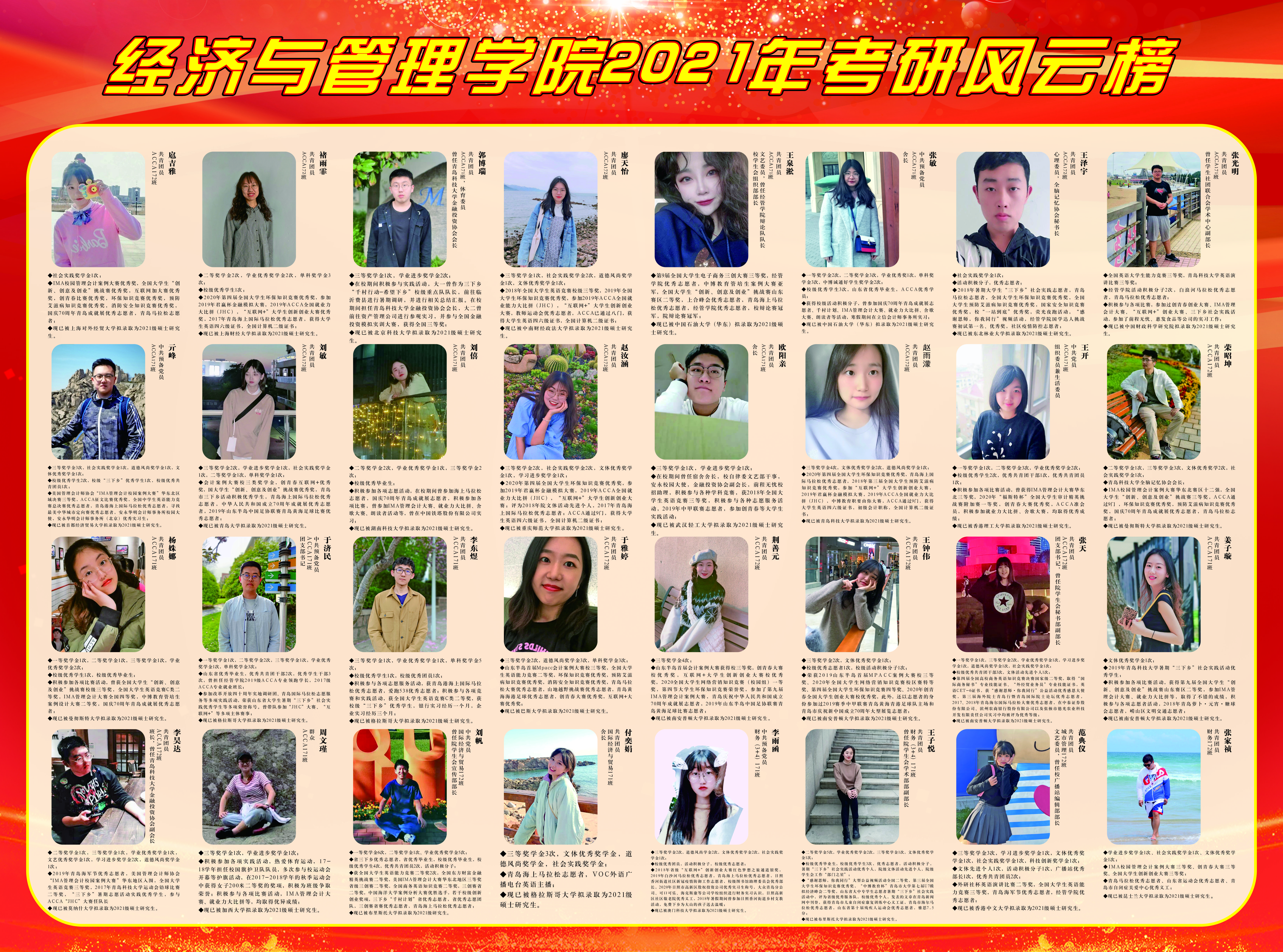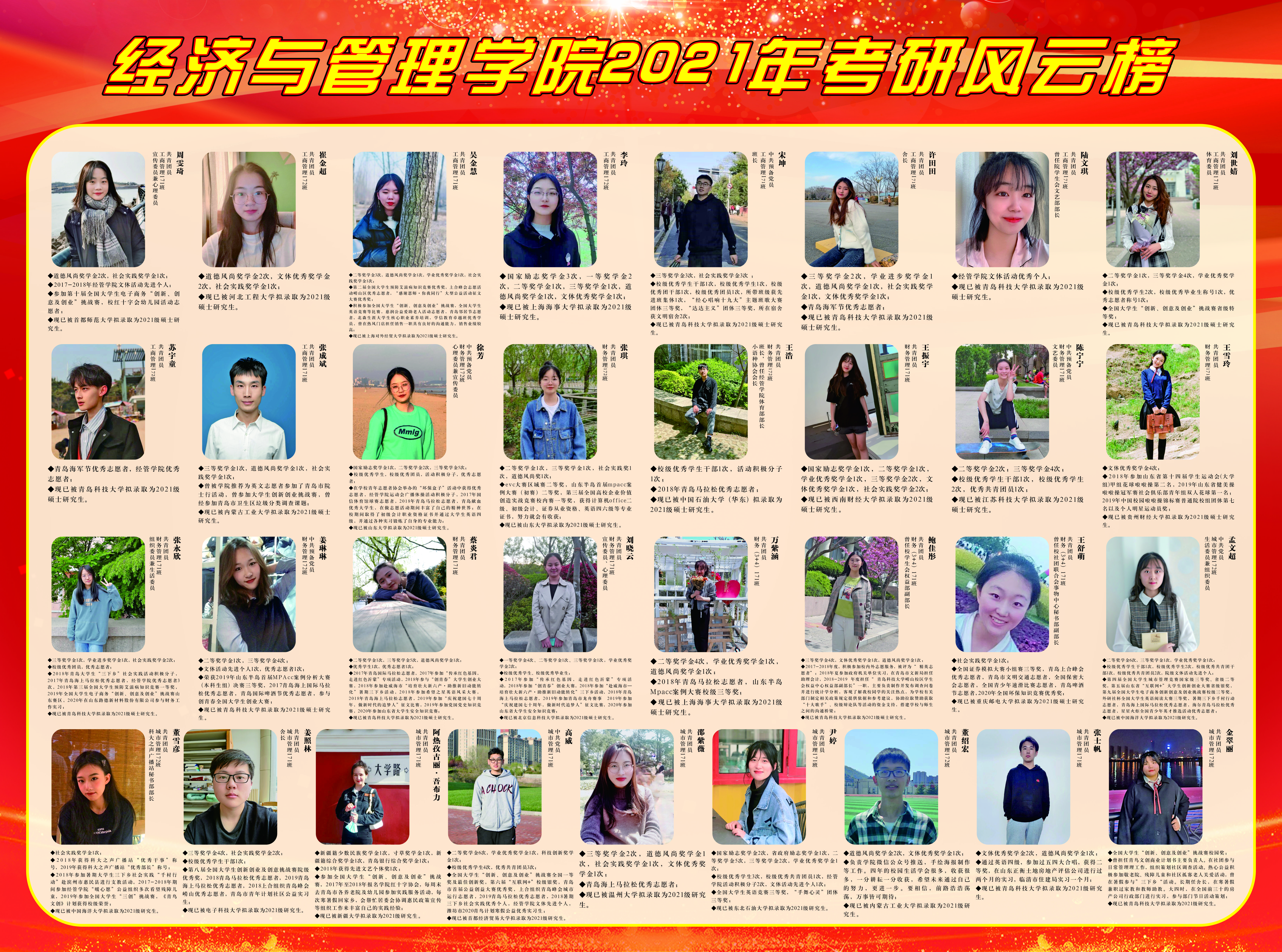 组织考研风云榜展示活动,旨在彰显经管精神、传递经管声音。