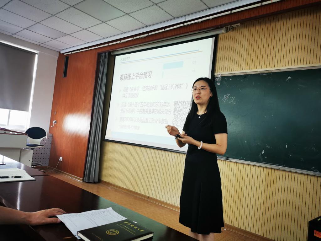 于经管楼419组织举办优秀教师示范课展示活动。本次示范课由山东省第八届“超星杯”高校青年教师教学比赛一等奖获得者、城市管理系优秀青年教师王裕瑾老师主讲。