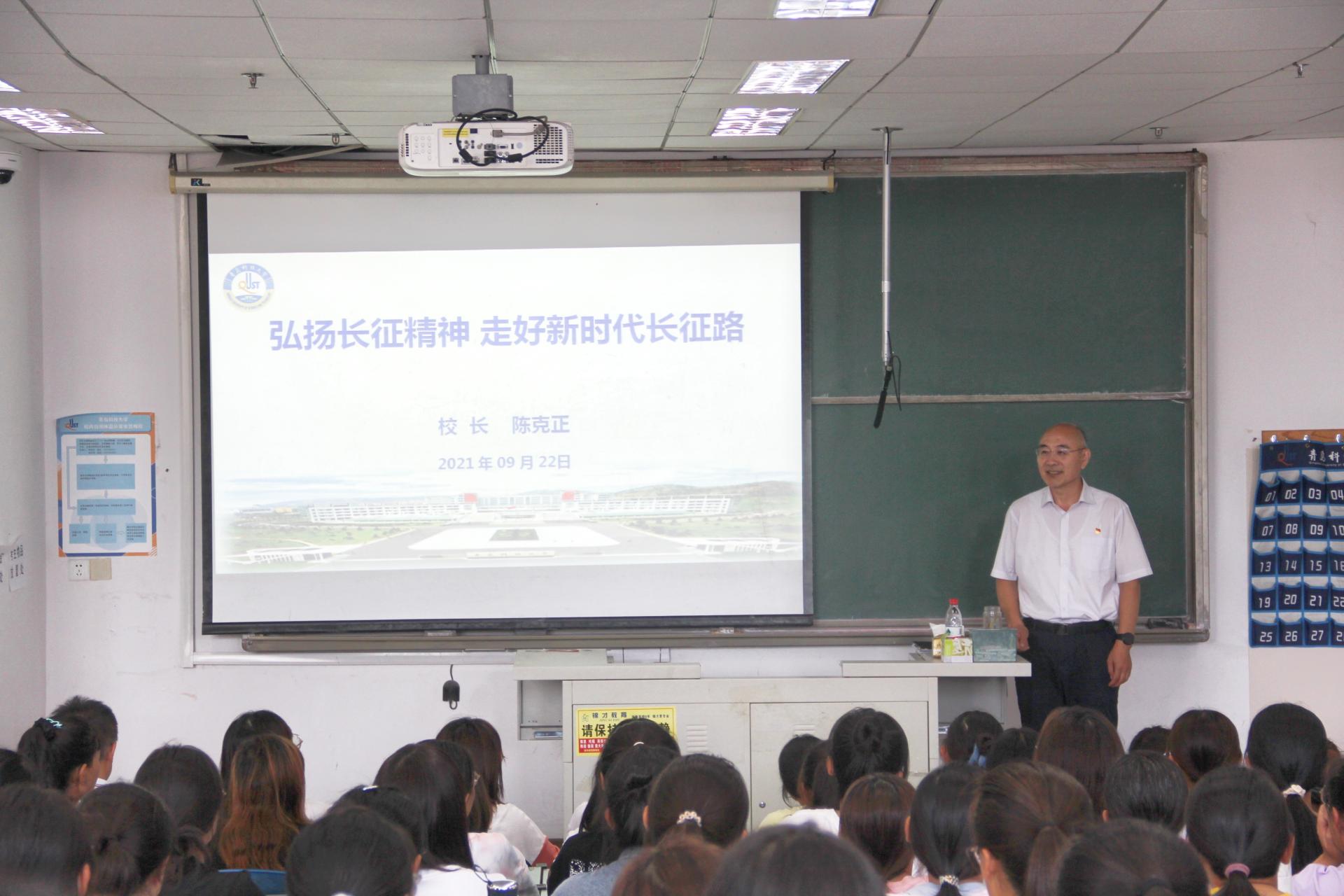 9月22日下午,校长陈克正走进学生课堂,以“弘扬长征精神 走好新时代长征路”为主题,为经管无码欧美