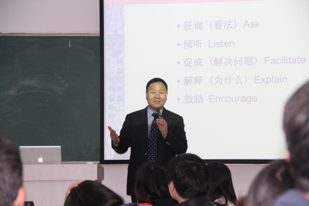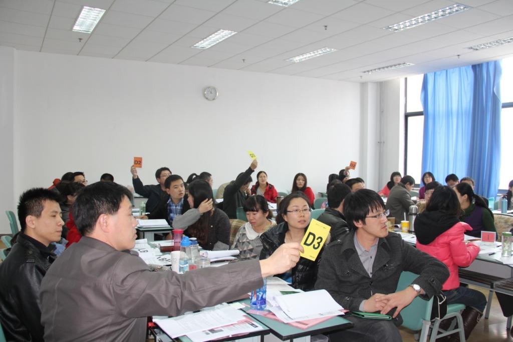 董栗序老师知识前沿渊博,培训寓教于乐,循序引导各位MBA学员识别员工的不同发展阶段特征,模拟各种领导情景,指出与员工发展阶段相适应的的领导型态。董栗序老师说:“权变领导的精髓在于:没有最好的领导型态,一切依情景而定;有效的领导,要关注员工的态度、意愿和情感;领导是一种艺术,要针对不同类型部属使用不同技巧,对同一下属的不同发展阶段使用合适的领导型态”。董栗序老师还指导同学们对自己的领导灵活度及领导的有效性进行了自我测评,使同学们了解自己的主要领导型态及次要领导型态,及强化型态有效型的方法。