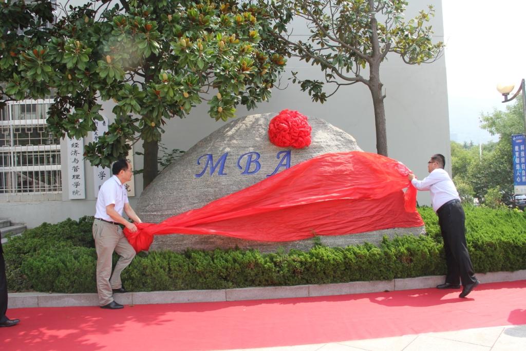 接着,刘光烨与校友代表宫平强共同为MBA纪念石揭幕。聂广明为2010级校友颁发了捐赠证书,全体人员合影留念,仪式圆满结束。