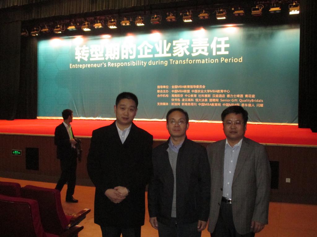 由中国MBA联盟和中国农业大学联合主办的“第七届中国MBA领袖年会”于2013年11月22日-24日在中国北京隆重召开,本届论坛以“转型期的企业家责任”为主题,诚邀政界要员、商界精英、著名专家学者、优秀MBA学员等,共同探讨在中国改革和转型期企业家们带来的推动力。青岛科技大学MBA中心李勋来教授、联合会李守峰副主席、严凤辉副主席赴京参加本次会议。
