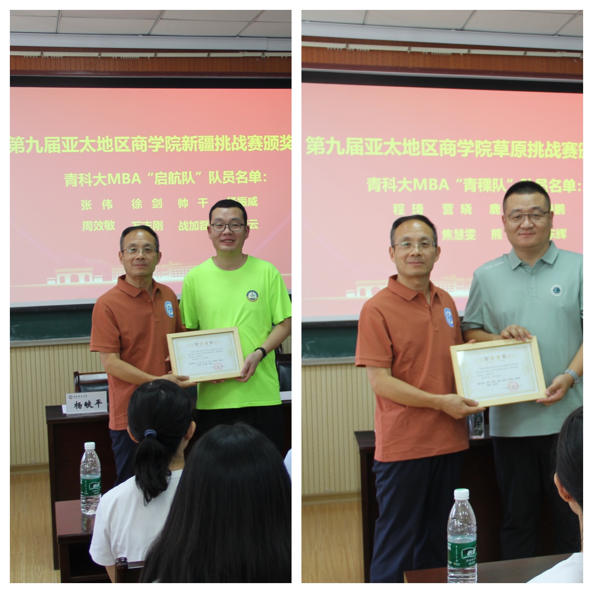 草原挑战赛的表彰决定,并为获奖学员代表颁发证书。李书记表示:今天的颁奖,不仅是对获奖同学的认可,更是MBA精神的传承仪式,全体新生要努力学习理论知识,积极参加实践活动,努力收获精彩人生。