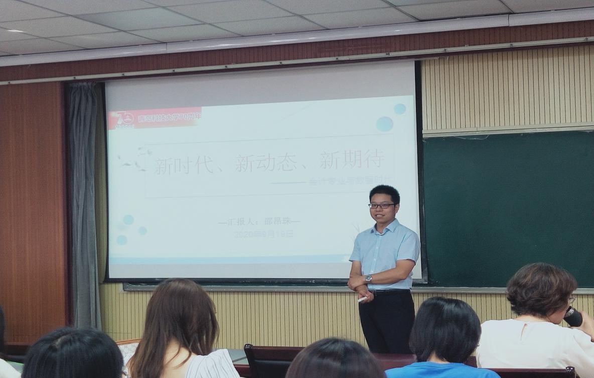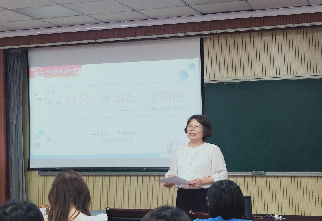 2020年9月19日9点,全国高端会计人才、青岛科技大学校外导师邵昂珠老师,以“新时代、新动态、新期待——会计专业与数智时代”为主题,为我院师生带来了精彩的高端讲座。讲座由经管无码欧美