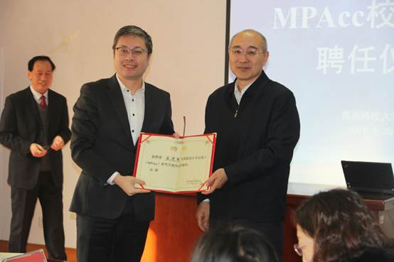 青岛科技大学副校长陈克正代表学校向到会的19位MPAcc校外导师颁发了聘任证书。